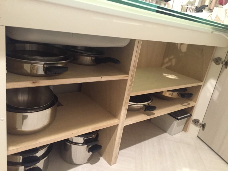 この状態では使い勝手が悪いとのことで鍋の高さなどの寸法を細かく測り、棚を作成することになりました。